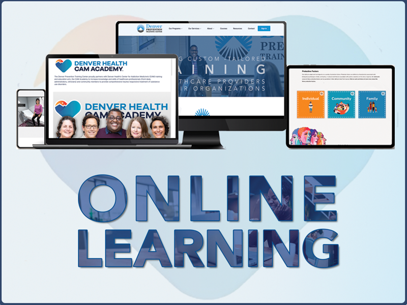 The Denver Prevention Training Center proudly partners with Denver Health’s Center for Addiction Medicine’s (CAM) training and education arm, the CAM Academy to increase knowledge and skills of healthcare professionals (front desk, administrators, clinicians) and community members to provide comprehensive trauma-responsive treatment of substance use disorders.